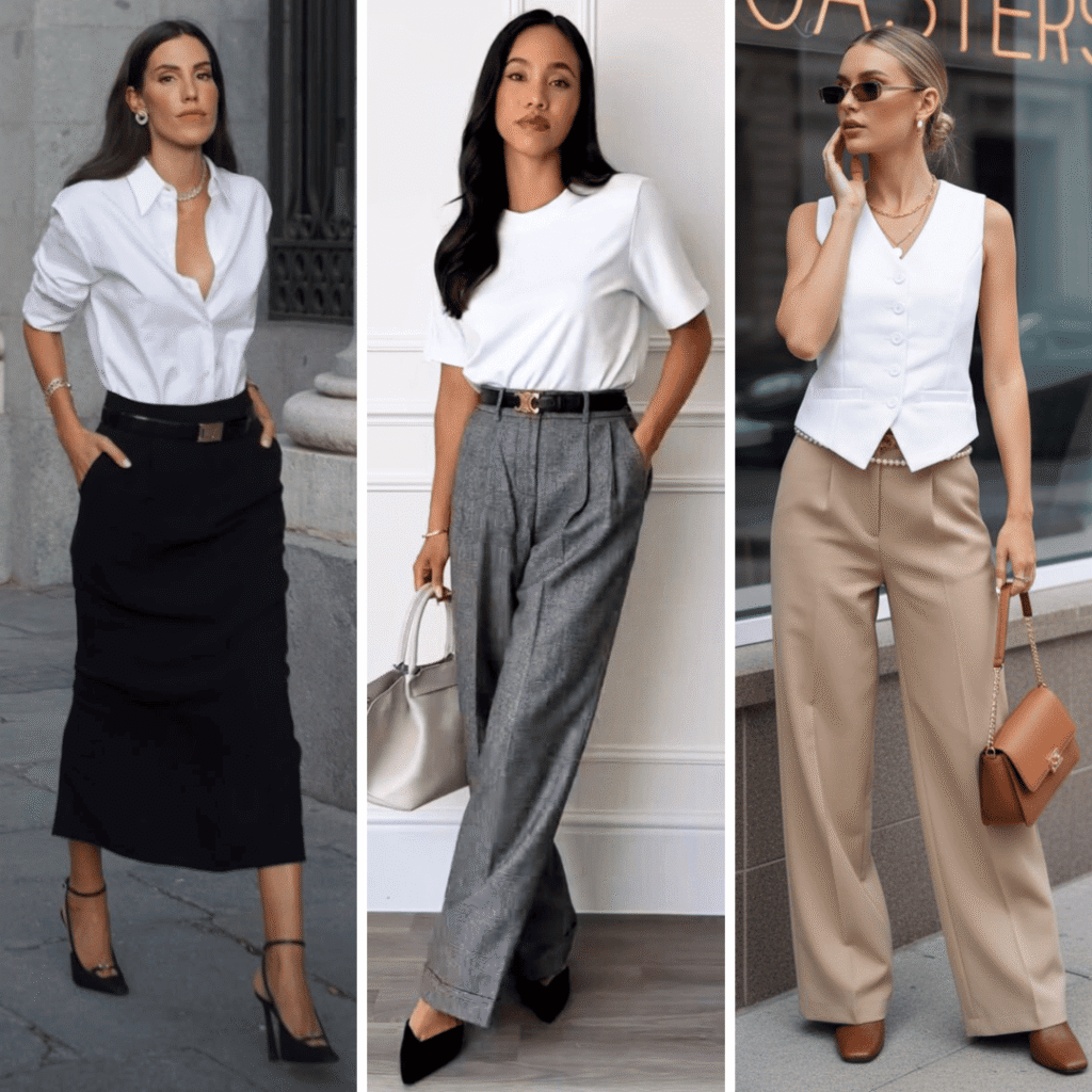 Todas essas peças acima vão combinar entre si e com as outras peças do seu guarda-roupa, fazendo com que você se sinta bem vestida e confiante. Invista nelas !