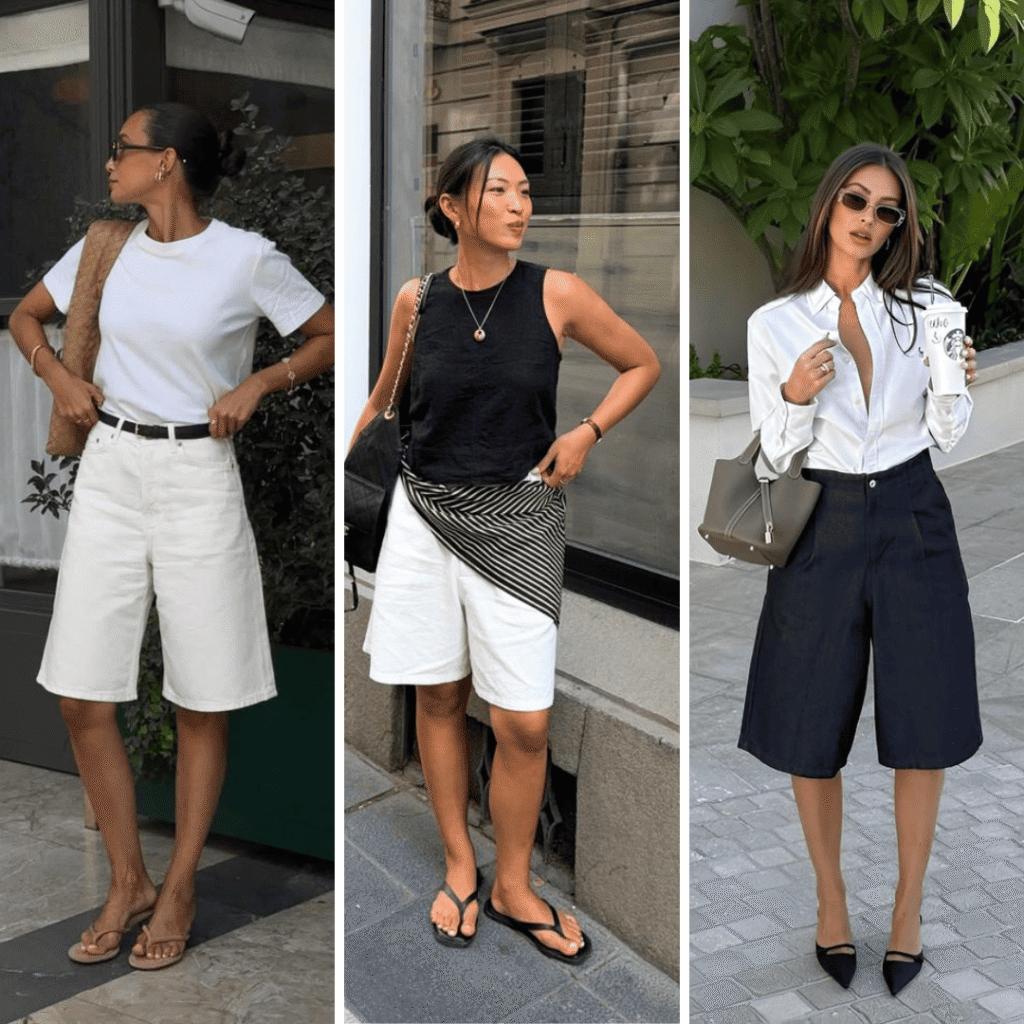 Quanto mais sofisticado for o tecido da peça, mais elegante será o resultado final do seu look. Modelos de jorts em alfaiataria combinam com ambientes de trabalho acompanhados de blusas mais elaboradas, sapatilhas de bico fino e saltos médios. E nada impede de usar esses modelos de jorts com tênis, mocassins e rasteiras.